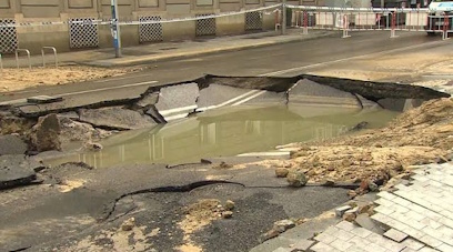 sondern eine defekte Wasserleitung den Boden unterspült hat, wodurch