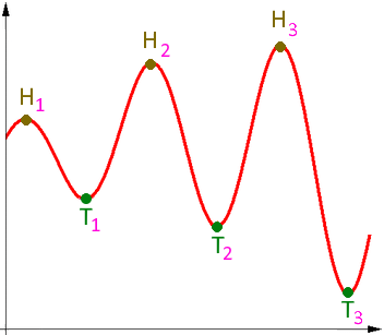 dass mit T3 ein dritter Tiefpunkt folgt, der allerdings zum ersten Mal niedriger als sein Vorgänger (T2 ) liegt, woraus folgt: T2 lag