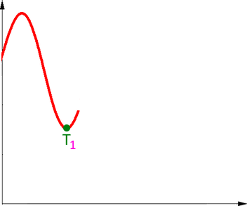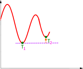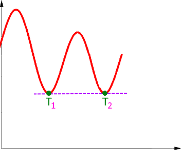 ein zweiter Tiefpunkt T2 , der genauso hoch liegt wie der erste Tiefpunkt T1 :