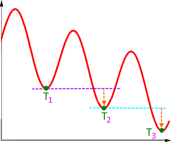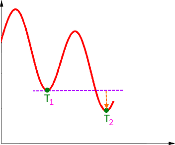 ein zweiter Tiefpunkt T2 , der tiefer liegt als der erste Tiefpunkt T1 :