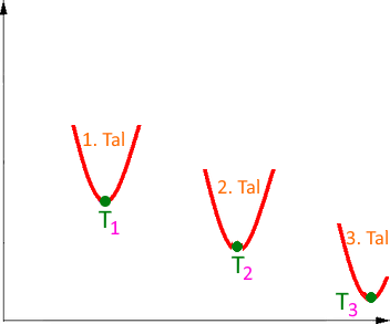 ein zweiter Tiefpunkt T2 , der allerdings höher liegt als der erste Tiefpunkt T1 :