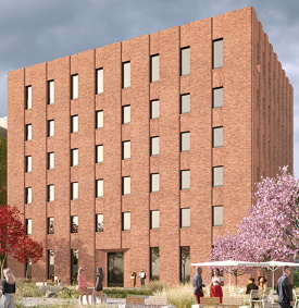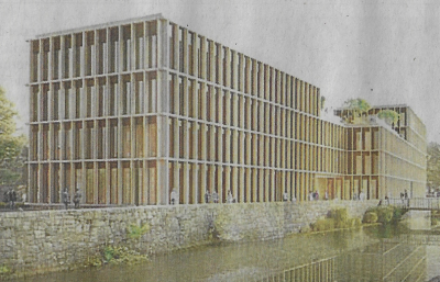 Und wie wird der neue "Hüffer-Campus" in Münster aussehen? Richtig geraten, er wird - wie einfallsreich! - natürlich eine Orgie rechteckiger Streifen: