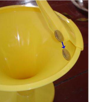 Das Geldstück wird durch die Zulaufbahn so beschleunigt, dass es auf der Außenkante in den Trichter rollt, und es läuft nur kontinuierlich weiter, wenn es immer auf dieser Außenkante bleibt.