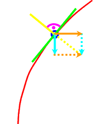 Mathematisch gesagt: es muss beim Runtertrudeln immer senkrecht auf der Kurventangente stehen: