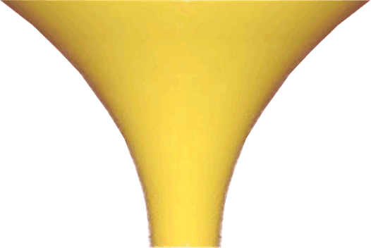 Aber das abgenagte Ergebnis allein hilft uns nicht weiter, denn schließlich wollen wir wissen, warum solch eine Kurve vorliegt - und dazu rüsten wir den Trichter eben doch wieder auf, und zwar mit dem Geldzulauf oben. Dieser gibt uns nämlich erst den entscheidenden Tipp, wie das Geldstück sich in dem Trichter bewegt und wie der Trichter deshalb aussehen muss: