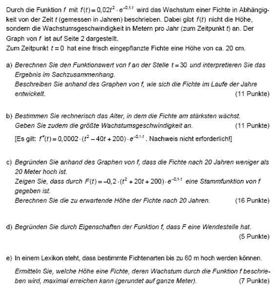 Und letztlich geht es dann um die rein innermathematische "Kurvendiskussion" dieser Exponentialfunktion (hier f(t)=0,02 t2 · e-0,1t ) und kann man getrost das "Anwendungs"beispiel vergessen, ja, man ist erst dann "gut", wenn einem dieses Vergessen gründlich gelingt. überhaupt dienen die komplizierten Werte "0,02" und "-0,1t" da ja nicht der Anwendung, sondern sind einzig und allein enthalten, um die rein innermathematische "Kettenregel" abzuprüfen.