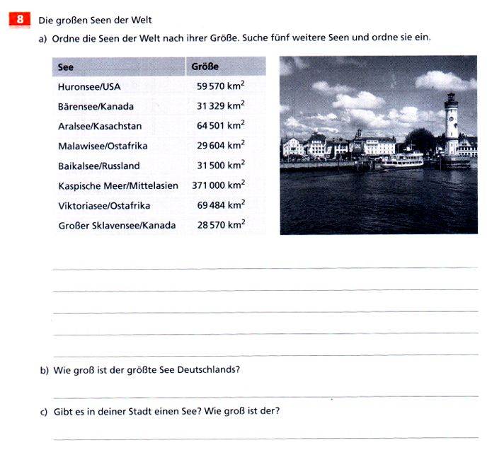Noch problematischer ist die auf den ersten Blick unscheinbare Aufgabe c), also "Gibt es in deiner Stadt einen See? Wie groß ist er?"