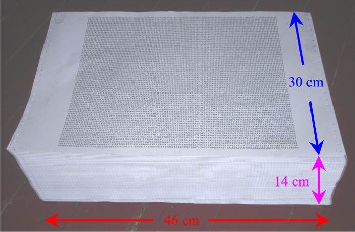 Deshalb sollen uns hier nicht die Einzelseiten, sondern nur (auf "Endlospapier") der Stapel aller Seiten interessieren: