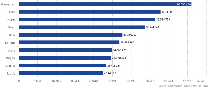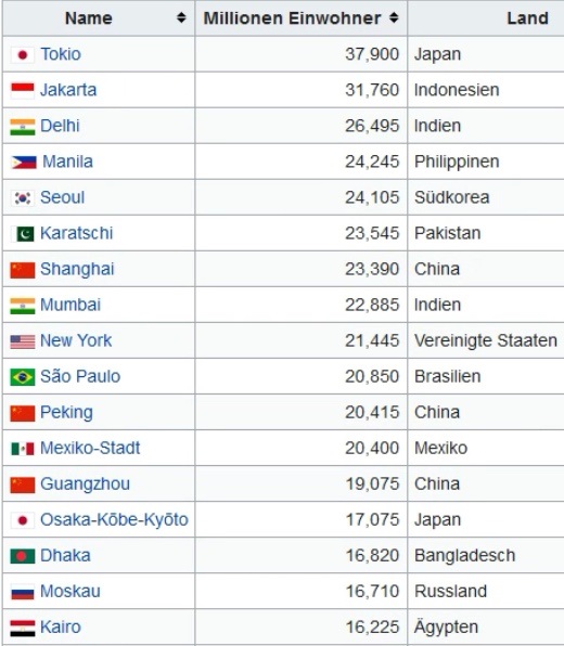 (bzw. „Metropolregionen“, also Städte mit ihrem Umland)