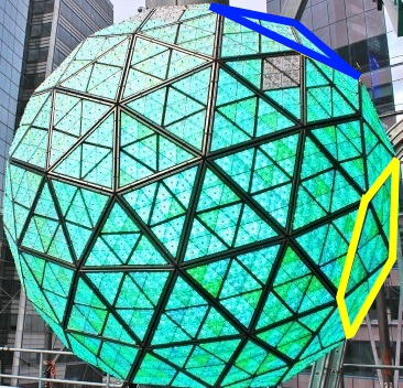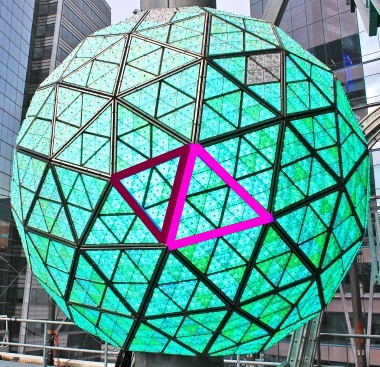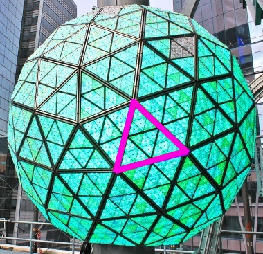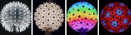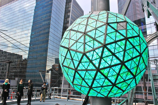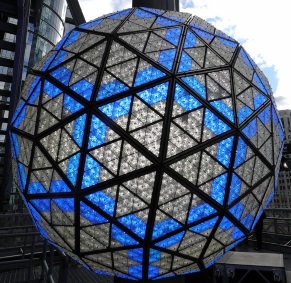 bzw. „New year‘s eve [= evening] ball“ oder kürzer „Eve ball“, der so heißt, weil mit ihm jedes Jahr in der Nacht von Sylvester auf Neujahr dramatisch der Jahreswechsel-Countdown gefeiert wird, was die New Yorker auf dem Times Square mit einer gigantischen und weltweit im Fernsehen übertragenen Party feiern: