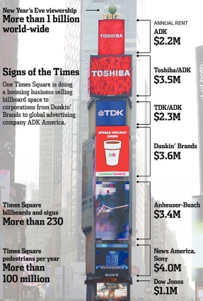 gigantische Reklametafel mit den vermutlich teuersten Reklameplätzen der Welt:
