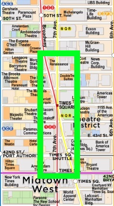 Auf diesem Grundstück steht seit 1905 das (immer wieder veränderte) Gebäude „Times Square One“: