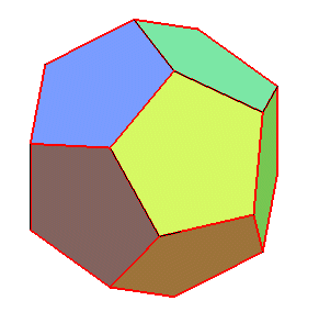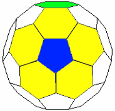 Aber von wegen "zumindest auf den ersten Blick", also "nicht auf den zweiten Blick": die aus Fünf- und Sechsecken zusammengesetzte Form des Fußballs wird in der Mathematik arg umständlich als "abgestumpftes Ikosaeder" bezeichnet, das so aussieht:
