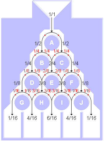 (Nebenbei: die Addition der Wahrscheinlichkeiten funktioniert beim Galton-Brett mit