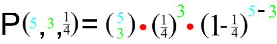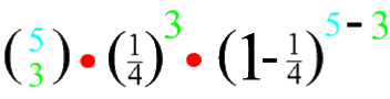| die Wahrscheinlichkeit, mit der ich im obigen Experiment bei fünfmaligem Ziehen 3 mal