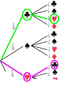 Für jeden der beiden Wege ergibt sich jeweils die Wahrscheinlichkeit