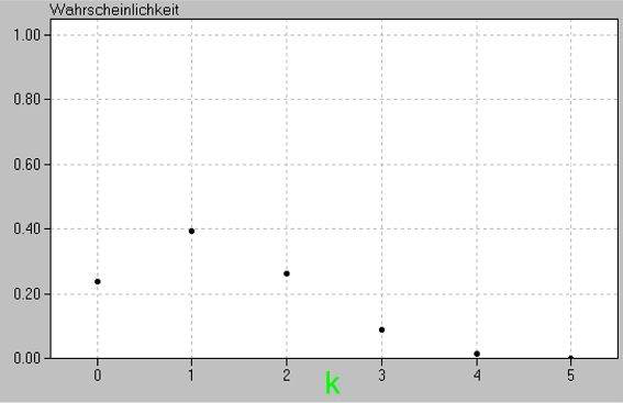| die Wahrscheinlichkeit, mit der ich im obigen Experiment bei fünfmaligem Ziehen 0 mal