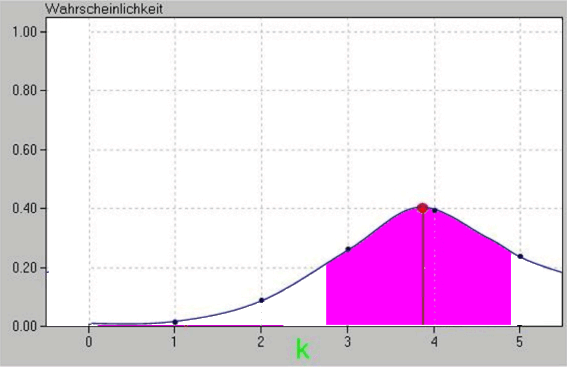 | die Wahrscheinlichkeit, mit der ich im obigen Experiment bei fünfmaligem Ziehen 4 mal