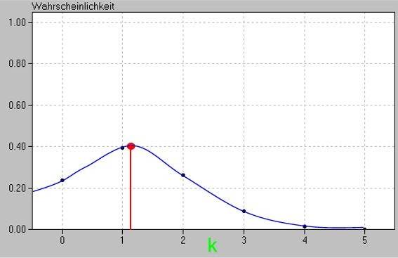 | die Wahrscheinlichkeit, mit der ich im obigen Experiment bei fünfmaligem Ziehen 1 mal