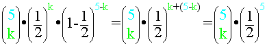 Schauen wir uns nun mit unserem Vorwissen eine besonders einfache Binomialverteilung an, nämlich die Gleichverteilung, d.h. dass jeder der beiden Fälle