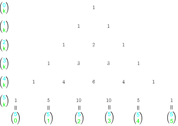 Und genauso können wir das für sämtliche 0 ≤ k ≤ n, also für k = 0, k = 1, k = 2, k = 3, k = 4 und k = 5, tun: