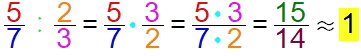 (weil der Zähler 15 und der Nenner 14 annähernd gleich groß sind)