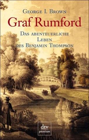 | George I. Brown: Graf Rumford; Das abenteuerliche Leben des Benjamin Thompson; dtv premium Klappentext: "Bauernbub aus Massachusetts, Spion, Offizier, Frauenheld, Kaufmann, Kriegsgewinnler, Wissenschaftler, Gründer der Royal Institution in London und Wohltäter der Menschheit, im amerikanischen Unabhängigkeitskrieg wegen Spionagetätigkeit des Landes verwiesen, in Bayern geadelt, in London geehrt, in Frankreich gestorben: Das Leben dieses Mannes, geboren 1753 bei Boston und gestorben 1814 bei Paris, bietet Stoff für mehrere Romane." ... und in der Tat hat Günter Grass in seinem Roman "Der Butt" Rumford ein Denkmal gesetzt. Einziger Nachteil des Buchs von Brown: die wissenschaftlichen Erkenntnisse Rumford werden nicht gerade verständlich dargestellt. |