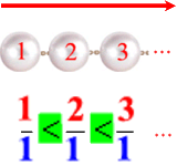Während also die natürlichen Zahlen alle hübsch brav und überschaubar hintereinander liegen, kann man solch eine Ordnung bei den Brüchen auf den ersten Blick nicht erkennen. Sie liegen zwar auch alle auf dem (eindimensionalen) "Zahlenstrahl", aber doch leider völlig chaotisch. So ist etwa die Größenordnung von Brüchen bzw. ihr Verhältnis zueinander kaum zu erkennen. Beispielsweise gilt