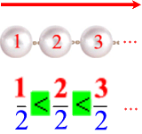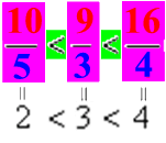 Nun haben Brüche aber immerhin den Vorteil, dass sowohl ihre Zähler als auch ihre Nenner natürliche (bzw. ganze) Zahlen sind. Und immerhin kann man die Beziehung zwischen zwei Brüchen in zwei Spezialfällen gut erkennen: