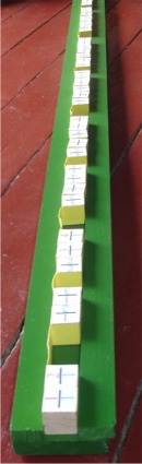 eingeordnet war, habe ich doch gestaunt, wie klein das Quadrat (20 cm • 20 cm) und wie lang die Reihe war (2 m). Und prompt sagte mein sechsjähriger Sohn von sich aus, er glaube nicht, dass die lange Reihe wieder in das Quadrat "zurück" passe.