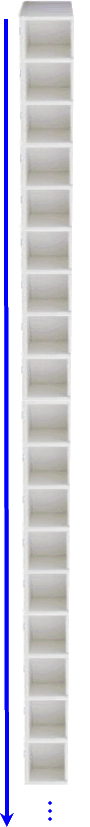 Beim Versuch, das zweidimensionale Regal eindimensional zu machen, ist es allzu verführerisch, mit einer (ganzen) Zeile oder Spalte anzufangen. Weil jede solche Zeile oder Spalte aber unendlich lang ist, hieße das, dass wir nie aus ihr heraus kämen