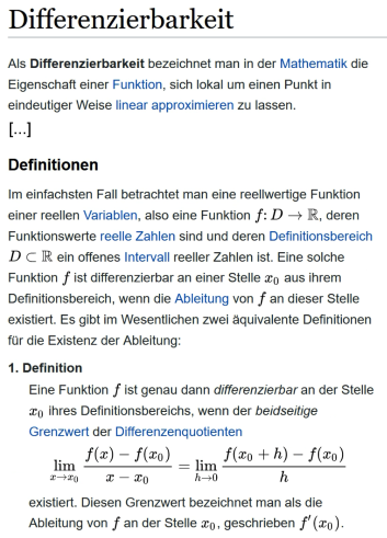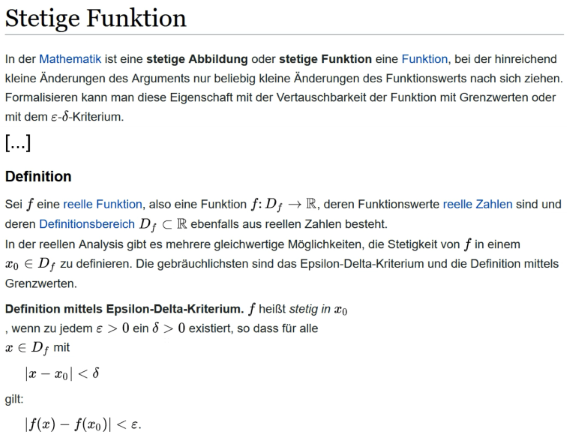 auch die mathematisch notierten Definitionen der Stetigkeit und Differenzierbarkeit wichtig. Schüler müssen eben auch mathematische Vorgehensweisen