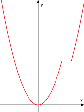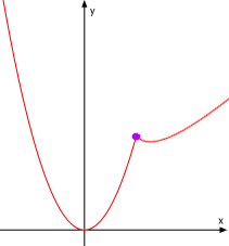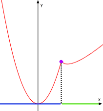 sogenannter "partieller" Differenzierbarkeit, wenn die Funktion in Teil-Intervallen differenzierbar ist, also z.B. für das blaue und das grüne Intervall in