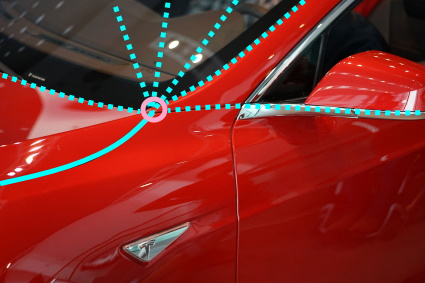 Ein Problem wird aber allemal bestehen bleiben: fast alle Linien an Autos sind dreidimensional, Schülern steht aber nur das Werkzeug zweidimensionaler Funktionen zur Verfügung.