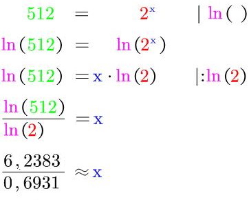 Machen wir uns damit an die Lösung der Gleichung 512 =