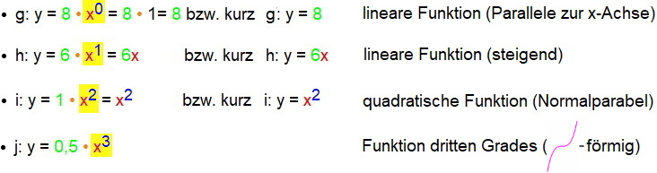 Potenzfunktionen haben Funktionsgleichungen der Form y =