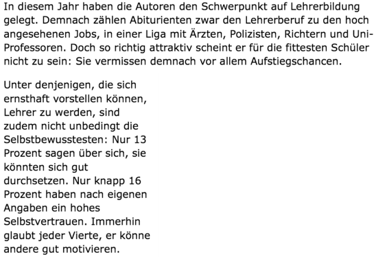 (glücklicherweise gibt's aber alle paar Jahre einen Fachlehrerwechsel, so dass Schüler halbwegs gute Chancen haben,