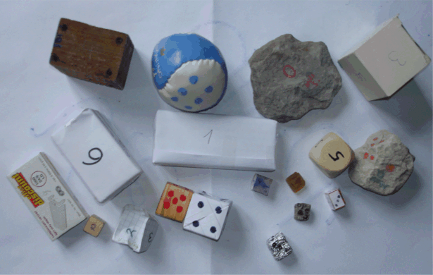 (Vgl. die "Würfel", die SchülerInnen für eine Klausur gebastelt / mitgebracht hatten und nun auf ihre Verteilung hin "bewerten" sollten: