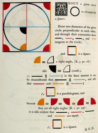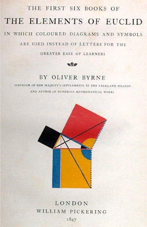 Aber sogar im Bereich der Geometrie ist noch sehr viel mehr möglich, wie ein gewisser Oliver Byrne schon im Jahr 1847 (!) ziemlich radikal bewiesen hat: