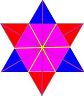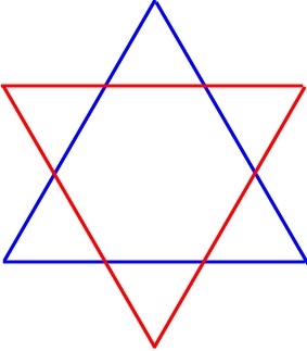 (das jeweils zweite Dreieck geht aus dem ersten durch Punktspiegelung am Mittelpunkt des ersten hervor)