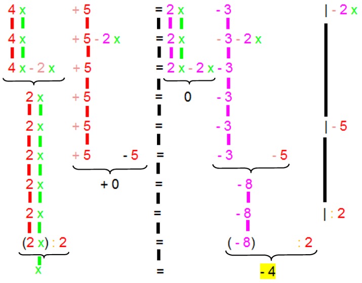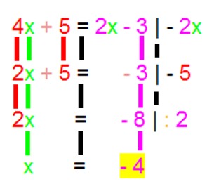 Das Lösen von Gleichungen hat immer das Ziel, dass in der letzten Zeile nur noch x bzw. EIN x steht