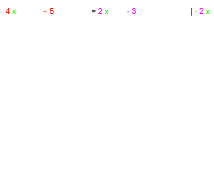 Auf dem Weg zum Standardziel x = Lösung stört da zu allererst, dass das x noch auf beiden Seiten vorkommt, was wir schell beseitigen