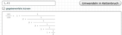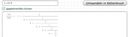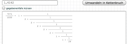 Dabei ist „so ungefähr“ eine schöne Umschreibung für den nie völlig genauen Annäherungsprozess, um den es bei Kettenbrüche geht.