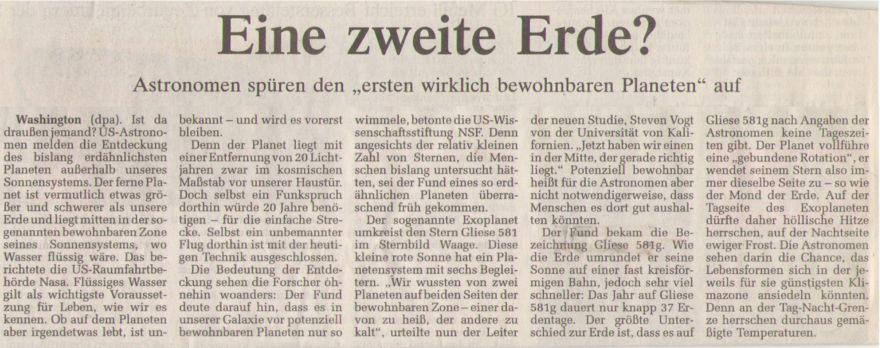 "Exoplaneten" begründet, aber auch dabei gesagt, dass noch ein für Leben geeigneter, relativ kleiner und gleichzeitig im "richtigen" Abstand um seine Sonne kreisender Planet fehle, der aber vermutlich ziemlich bald gefunden werde.