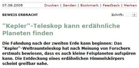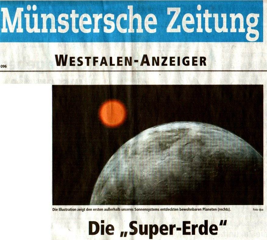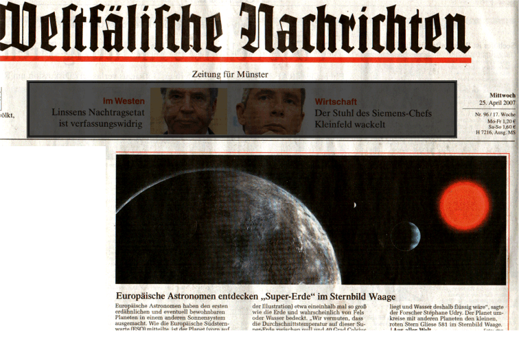 heute (25.4.07) nun also ist es so weit: zwar wurde noch nicht Leben auf anderen Planeten nachgewiesen
