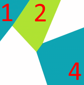 Wenn wir dabei die weißen Flächen 3 als 5 Hintergrund betrachten, bleiben immer noch die drei Flächen x1x, x2x und x4x übrig.