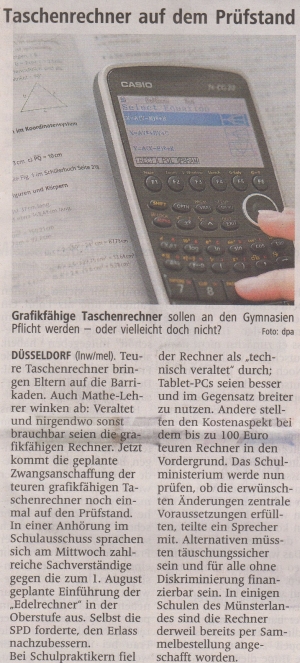 Und so haben also massenhaft Gymnasien in NRW in letzter Zeit mehr oder weniger notgedrungen die Einführung "Grafikfähiger TaschenRechner" (kurz GTR) beschlossen.