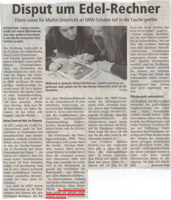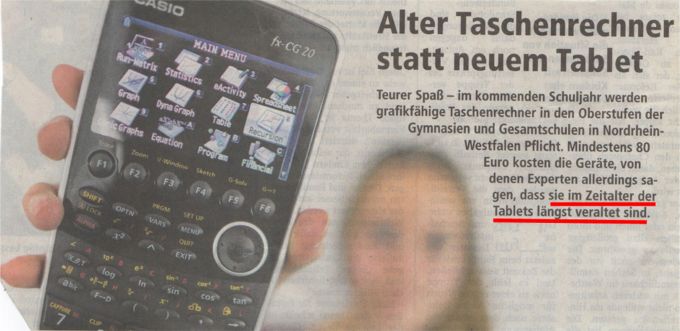 weil man nicht fähig zur Fundamentalkritik ist, ist das "Nein" nur ein gewendetes "Ja": da die GTR veraltet sind, fordert man modernere Tablets. D.h. man ist auch für den massiven Computereinsatz im Mathematikunterricht.