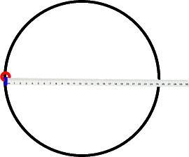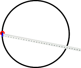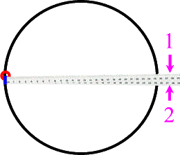 man legt den Nullpunkt des Lineals in einen beliebigen (Fix-)Punkt auf dem Kreisrand