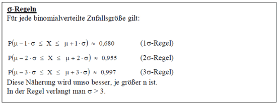 (nur) für Binomialverteilungen gibt es einige sogenannte "Sigma-Regeln"